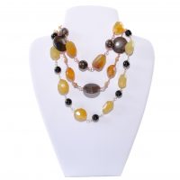 These 3 necklaces are built around the theme of bees, vital to our existence and incredible to watch. Each necklace has at its heart the golden tones of these agates and each can be yours for £30. Description top to bottom is: agate and bronzite set on copper, agate and coffee jasper with picture jasper accents on copper and agate and black onyx on silver plated copper. Each necklace is 17 inch/45cm long.