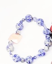 This bracelet has every day wear set, with the denim blues of the sodalite and a focal copper plated pyrite stone as an accent, all set on elastic.